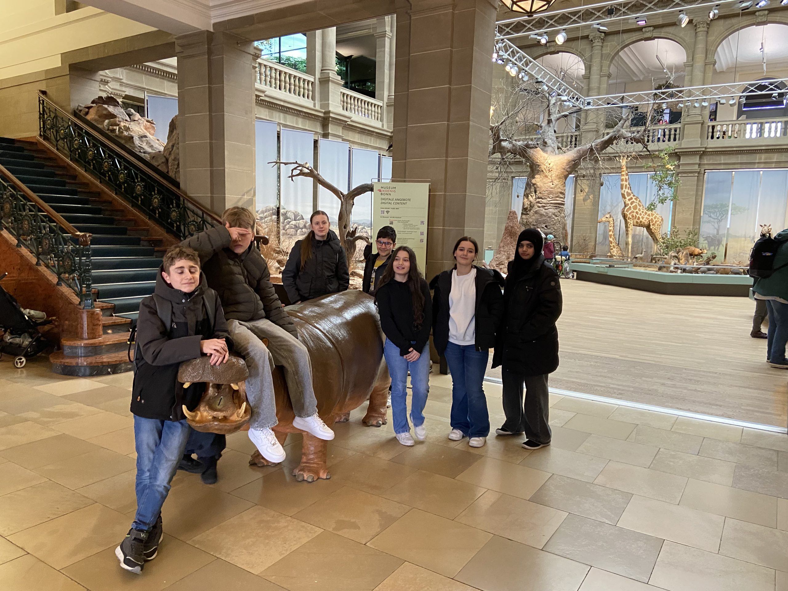 Als MINT‑Schule unternehmen wir jedes Jahr einen naturwissenschaftlichen Ausflug. Dieses Mal führte er die Klassen 7a und 7b ins König Museum Bonn, eines der größten naturkundlichen Museen Deutschlands, das für seine lebendigen Ausstellungen zu Tierwelt und Ökosystemen bekannt ist.